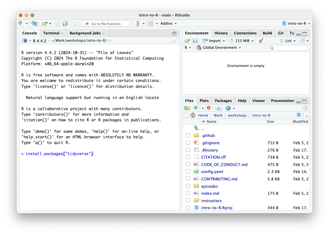 R will begin downloading and installing some packages which will take a few minutes. You will see the progress of these downloads and installations in the console.