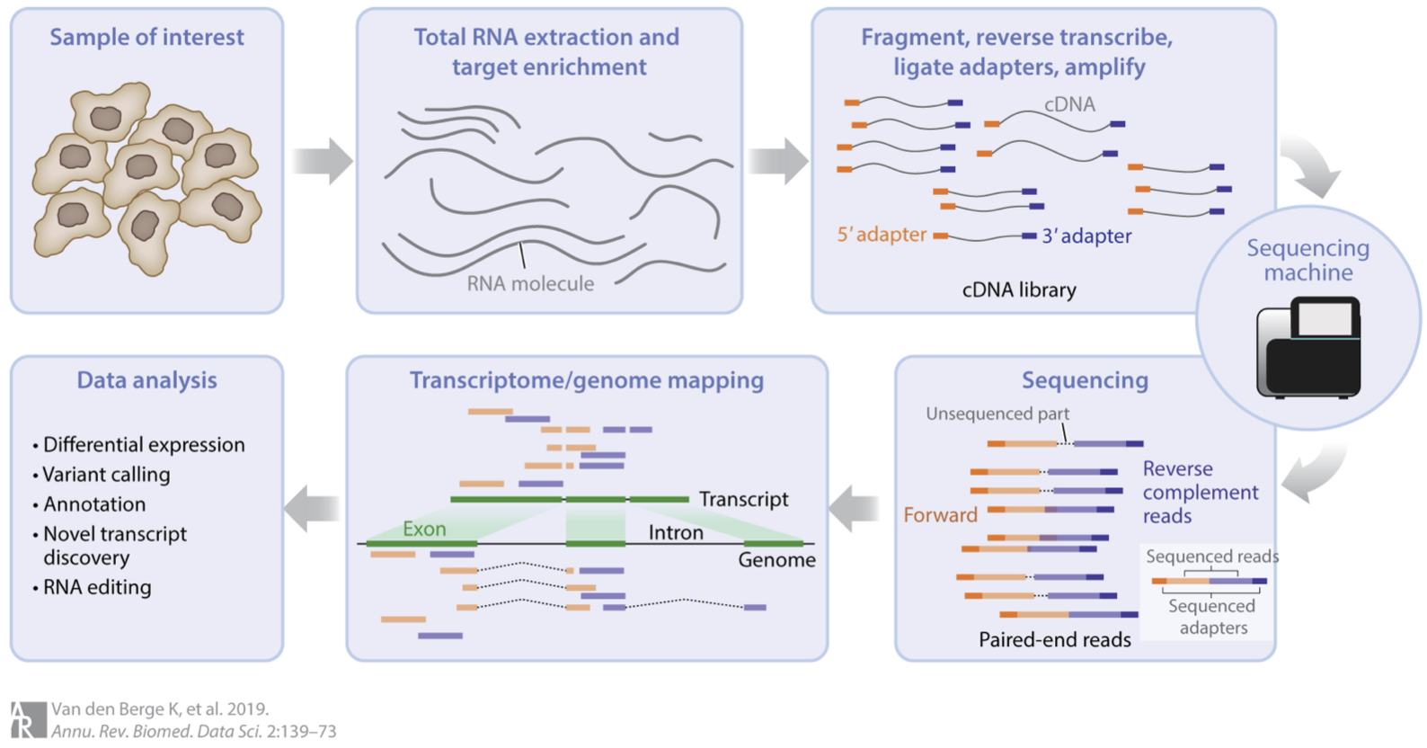 Comparing gene expression, i.e. the amount of RNA transcript, in different experimental conditions provides important biological insights. For example, comparing gene expression in cancer and non-cancer tissue gives us insights into the biology of cancer. While there are many ways of measuring gene expression, the focus of this workshop will be (bulk) RNA-seq, a technology which (nominally) measures gene expression across the whole transcriptome, i.e. all RNA transcripts, in a sample.