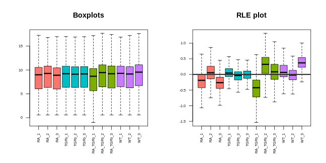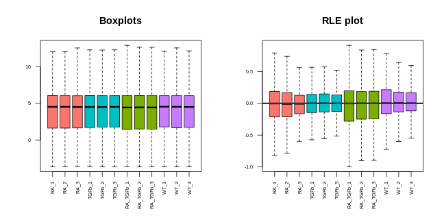 # boxplot and RLE plot (simple base R versions; they're generally not for publication)